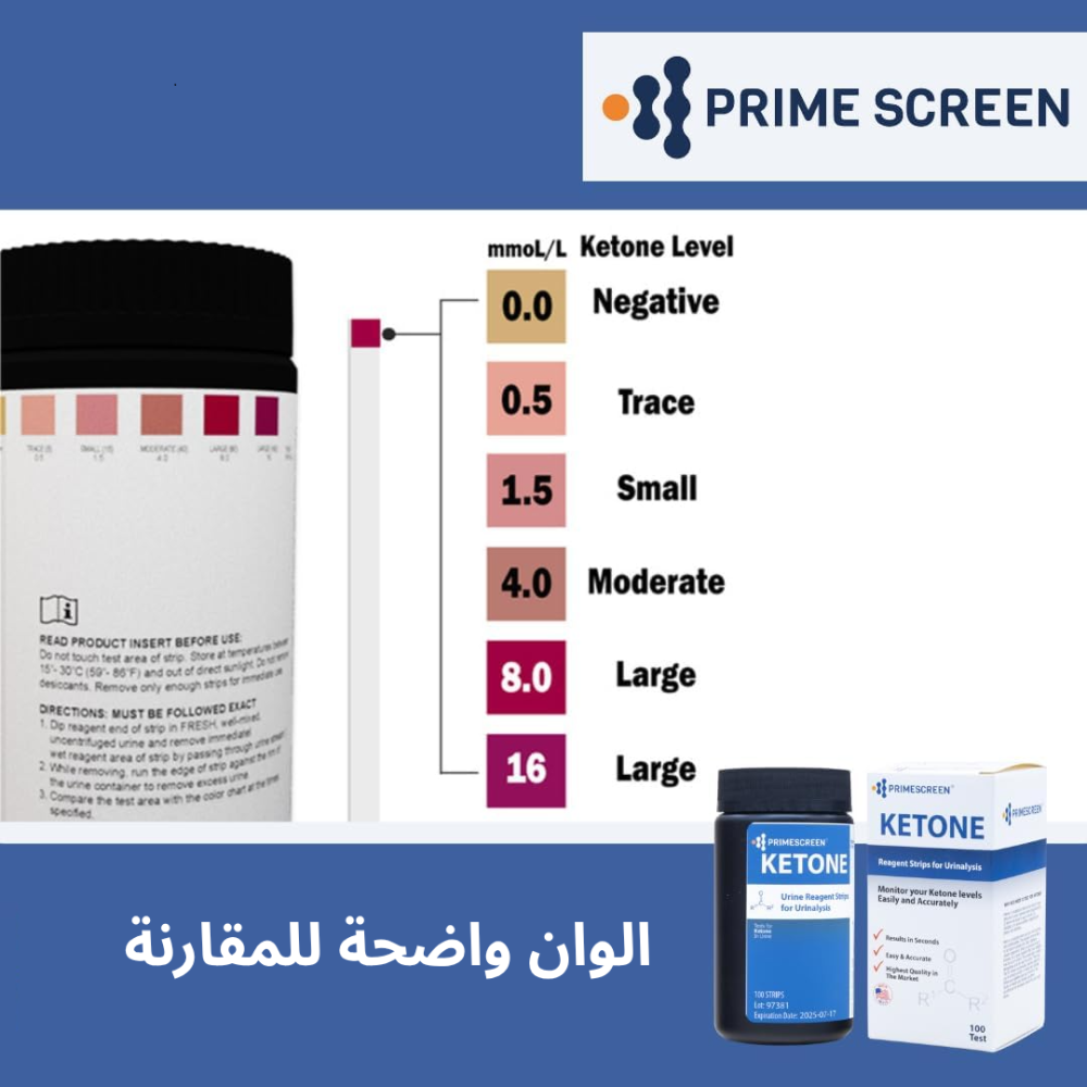 سهل الاستخدام: فقط اغمس الشريط في البول، ثم اقلب الفائض وانتظر من 40 إلى 60 ثانية، ثم قارِن اللون بالدليل المرفق لمعرفة مستوى الكيتونات لديك.