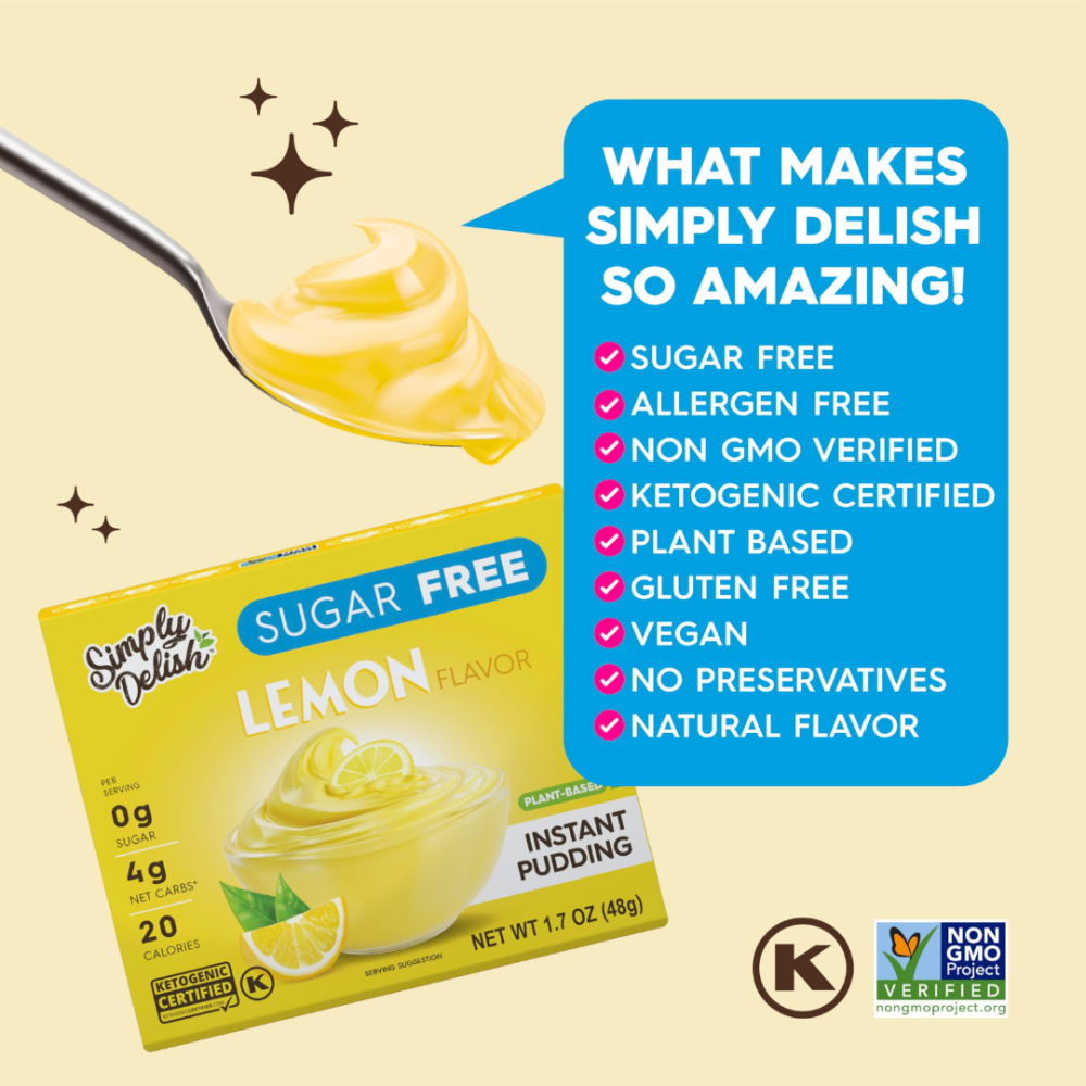 استمتع بالنكهة المنعشة والرائعة لبودينغ الليمون من Simply Delish! حلوى كريمية خفيفة بطعم الليمون الطبيعي تمنحك إحساسًا بالانتعاش في كل ملعقة. خيار مثالي لمحبي الحلويات الصحية والخفيفة!